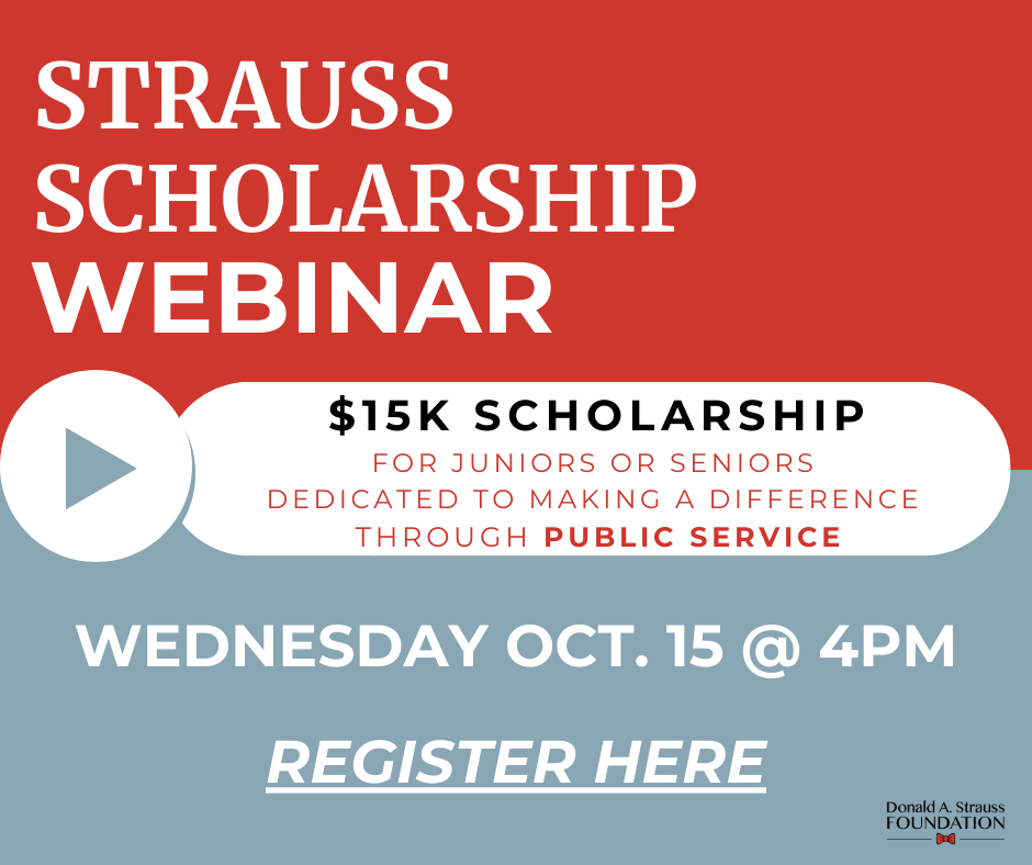 Wednesday, October 15th 2025, 4:00 pm-5:00 pm: Strauss Foundation Scholarship Webinar.